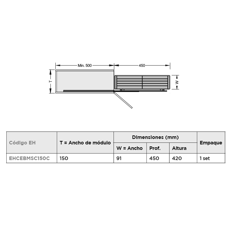 Conjunto Bajo Mesada Módulo 150mm Acero Cromado Eurohard