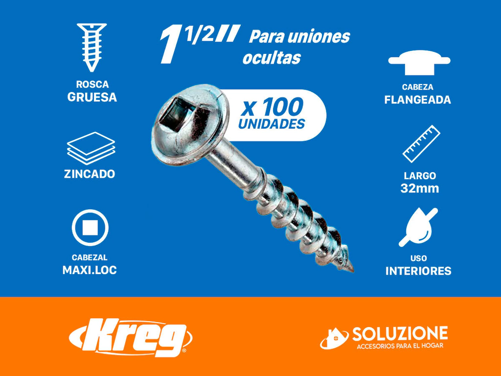 Tornillos 1" 1/2 Kreg SML-C150 Bolsa X 100